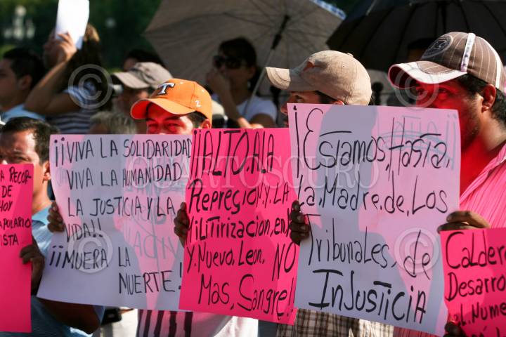 MONTERREY, NUEVO LEÓN, 28AGOSTO2011.- Habitantes de Monterrey se manifestaron a las afueras de palacio de gobierno, donde exigieron alto a la violencia que se vive en la región y clamaron la destitución del presidente de México Felipe Calderón Hinojosa, y el gobernador de Nuevo León Rodrigo Medina por los hechos ocurridos el pasado 25 de Agosto en el casino Royale donde un comando armado ataco dicha casa de apuestas y murieron 53 personas. FOTO: SAÚL LÓPEZ/CUARTOSCURO.COM