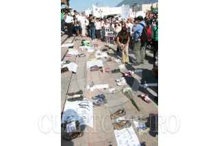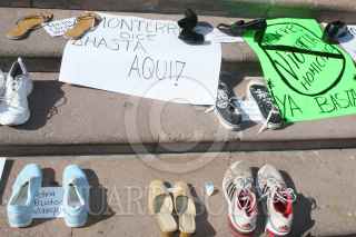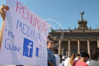 MONTERREY, NUEVO LEÓN, 28AGOSTO2011.- Habitantes de Monterrey se manifestaron a las afueras de palacio de gobierno, donde exigieron alto a la violencia que se vive en la región y clamaron la destitución del presidente de México Felipe Calderón Hinojosa, y el gobernador de Nuevo León Rodrigo Medina por los hechos ocurridos el pasado 25 de Agosto en el casino Royale donde un comando armado ataco dicha casa de apuestas y murieron 53 personas. FOTO: SAÚL LÓPEZ/CUARTOSCURO.COM