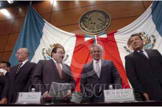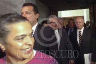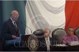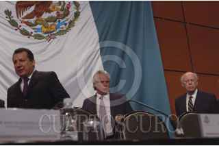 MÉXICO, D.F., 29agosto2011.- José Narro Robles, Rector de la UNAM, Baltasar Garzón Real, Magistrado especialista en temas sobre terrorismo y crimen organizado, Raúl Plascencia Villanueva · Presidente de la Comisión Nacional de los Derechos Humanos y Carlos Ramírez Marin, Diputado del PRI y presidente de la mesa directiva de la Cámara de Diputados, durante la inauguración del foro “Legalidad Democrática , Ética, Derechos Humanos y Seguridad” que se realizó en El Palacio Legislativo de San Lázaro. FOTO: GUILLERMO PEREA/CUARTOSCURO.COM