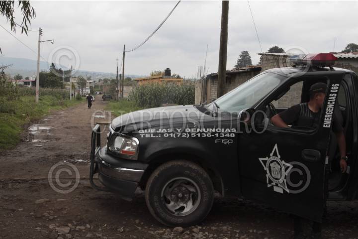 SAN FRANCISCO TLALCILALCALPAN, ZINACANTEPEC, ESTADO DE MÉXICO, 29AGOSTO2011.- Elementos del ejercito mexicano y policías municipales, resguardan fuertemente la calle La Joya en la colonia Santa Cruz de los Patos donde en días pasados una denuncia alerto que en una casa se encontraban enterrados los restos sin vida de varias personas, extraoficialmente se llevan contabilizados 7 cuerpos. Elementos de la policía que se encontraban en la zona mencionaron que se han suspendido los trabajos de excavación por lo que solo se encuentran en espera de su reanudación. FOTO: ENRIQUE ORDÓÑEZ/CUARTOSCURO.COM