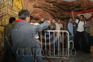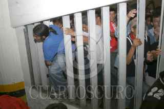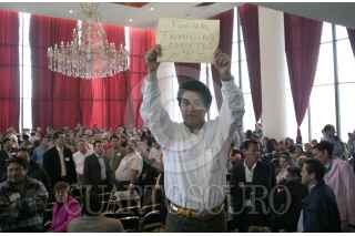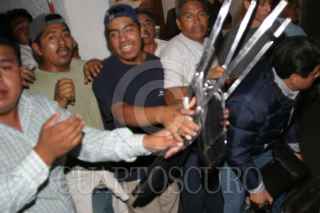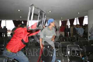 MEXICO, D.F. 23OCTUBRE2004.- Simpatizantes de Cuauhtemoc Gutierrez de la Torre ingresaron a la reunión que sostuvo el consejo político del PRI del D. F. y la su llegada al salón lanzaron sillas hacia los asistentes. FOTO: Nelly Salas/CUARTOSCURO.COM