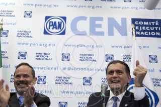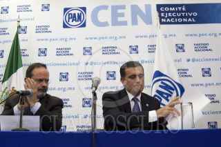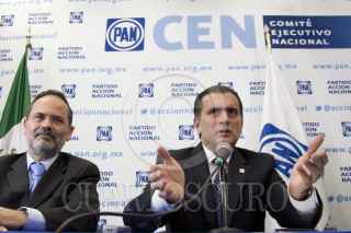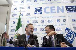 MÉXICO, D.F., 29AGOSTO2011.- Gustavo Madero, presidente nacional del PAN; y Alonso Lujambio Irazábal, Secretario de Educación Pública; durante una conferencia de prensa realizada en la sede nacional del Partido Acción Nacional donde Alonso Lujambio Irazábal anunció que se retiró de la contienda por la candidatura presidencia de su partido político. FOTO: IVÁN STEPHENS/CUARTOSCURO.COM