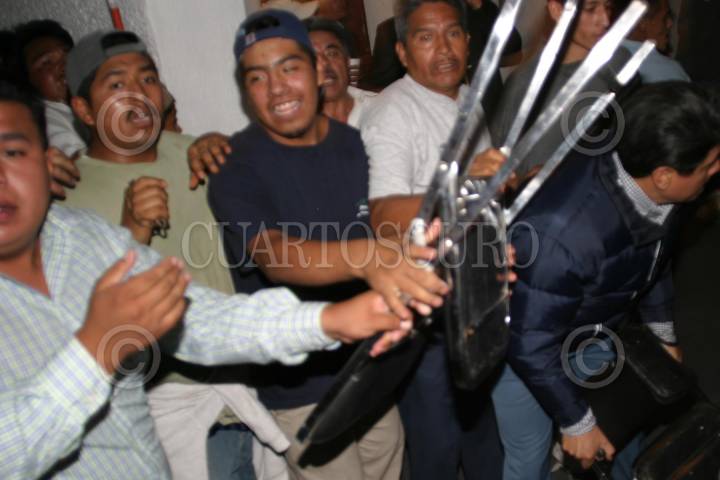 MEXICO, D.F. 23OCTUBRE2004.- Simpatizantes de Cuauhtemoc Gutierrez de la Torre ingresaron a la reunión que sostuvo el consejo político del PRI del D. F. y la su llegada al salón lanzaron sillas hacia los asistentes. FOTO: Nelly Salas/CUARTOSCURO.COM