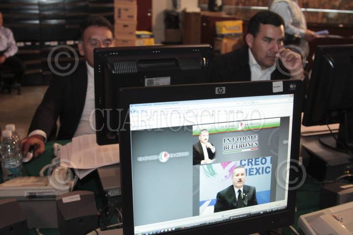 CULIACAN, SINALOA, 30AGOSTO2011.- Manlio Fabio Beltrones, Presidente de la mesa directiva del senado de la república, rindió su primer informe de gobierno en el cual se hizo resaltar al utilizar los medios electronicos como el twitter y facebook mismo que se vio en su pagina oficial www.senadorbeltrones.com donde abundo también en temas de carácter nacional como la inseguridad y violencia vivida por el crimen organizado y educación. FOTO: RASHIDE FRIAS/CUARTOSCURO.COM