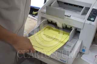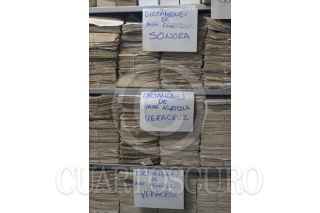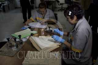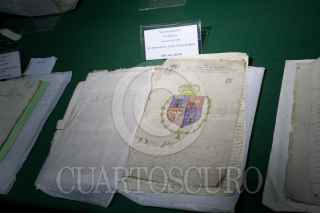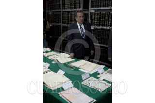 MÉXICO, D.F., 30AGOSTO2011.- Como parte de los trabajos de modernización del Archivo General Agrario (AGA), organismo dependiente del Registro Agrario Nacional (RAN), más de 70 millones de fojas de documentos agrarios están digitalizados y 17 millones, de un primer paquete, podrán ser consultados vía internet por el público en general a partir del próximo año. El AGA resguarda documentos de la historia agraria del país y el más antiguo es una cédula expedida por el rey Carlos V en 1540. Para este año quedarán digitalizadas un total de 90 millones de fojas de las 113 millones que integran el acervo. En conferencia de prensa, con motivo del 19 aniversario del Registro Agrario Nacional, el secretario de la Reforma Agraria, Abelardo Escobar Prieto, acompañado por el director en Jefe del RAN, Emilio Cedrún Vázquez, presentaron los avances en la digitalización del acervo agrario que quedará concluido en esta administración. FOTO: MOISÉS PABLO/CUARTOSCURO.COM
