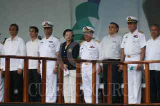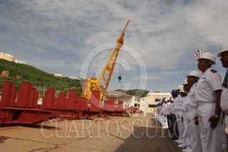 SALINA CRUZ, OAXACA, 30AGOSTO2011.- La mañana de hoy se llevó acabo la ceremonia de Botadura de buque de apoyo logístico ARM Montes Azules BAL-01, en el astillero de la Marina. Durante la ceremonia estuvo presente el secretario de Marina, Almirante Francisco Saynes Mendoza y fungió como madrina de botadura su esposa, María del Carmen Ruiz Durán de Saynez. FOTO: ARTURO PÉREZ ALFONSO/CUARTOSCURO.COM