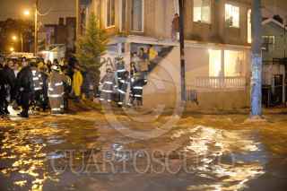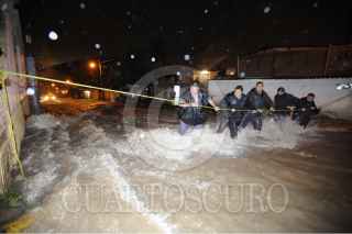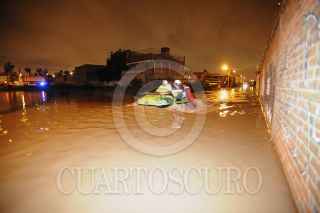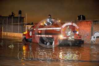 CUAUTITLÁN IZCALLI, ESTADO DE MÉXICO, 31AGOSTO2011.- Cinco colonias resultaron afectadas por las fuertes lluvias que provocaron inundaciones de más de un metro de agua. Las precipitaciones provocaron que se desbordara la presa El Ángulo en el municipio de Cuautitlan Izcalli. Cientos de cuadrillas de bomberos, policía estatal y protección civil se dieron a la tarea de rescatar con camionetas y motos anfibio, algunas de las familias que quedaron atrapadas en sus domicilios ya que la fuerte corriente de agua en las calles amenazaba su integridad física. Los municipios Villa Nicolás Romero y Atizapan también fueron afectadas la tromba. FOTO: LUIS CARBAYO/CUARTOSCURO.COM