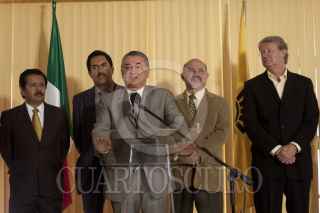 MÉXICO, D.F., 31AGOSTO2011.- Los perredistas Luis Sánchez, Camerino Márquez, Uriel López Paredes, Sergio Bénito Osorio y Heberto Castillo Juárez, integrantes Alternativa Democrática Nacional (ADN), formalizaron la solicitud para que el ingeniero Cuauhtémoc Cárdenas Solórzano participe en las elecciones federales del 2012, y sea el candidato de las izquierdas, ya que es una figura reconocida más allá del perredismo y de otros partidos políticos, lo que garantizaría la unidad de este instituto político. FOTO: MOISÉS PABLO/CUARTOSCURO.COM