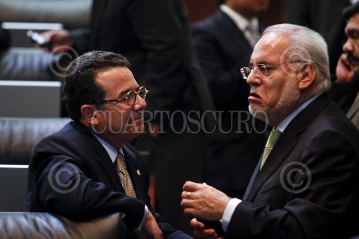 MÉXICO, D.F., 31AGOSTO2011.- Los senadores, Arturo Herviz, Renan Cleomidio Zoreda, Arturo Nuñez, Francisco Arroyo, Ricardo Garcia Cervantes, Ludivina Menchaca, durante la toma de protesta como nuevos integrantes de la Mesa Directiva del Senado de la República. FOTO: RODOLFO ANGULO/CUARTOSCURO.COM