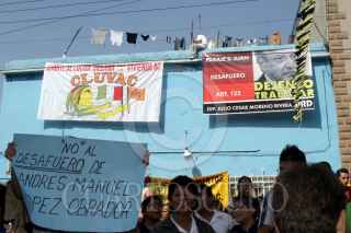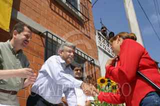 México, D.F. 24 OCTUBRE 2004.- Vecinos de la colonia 20 de Noviembre de la delegación Venustiano Carranza manifestaron su apoyo al jefe de gobierno capitalino, Andrés Manuel López Obrador, durante su gira de entrega de viviendas por distintas delegaciones. FOTO: Sandra Perdomo/CUARTOSCURO.COM
