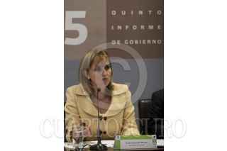 MÉXICO, D.F., 01SEPTIEMBRE2011.- Gloria Guevara Manzo, titular de la Secretaria de Turismo, durante la conferencia en la que dio a conocer la glosa del 5º. Informe de Gobierno Federal en lo referido a esta dependencia. FOTO: GUILLERMO PEREA/CUARTOSCURO.COM