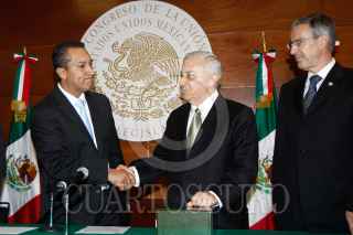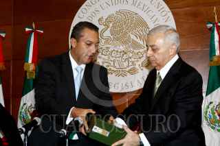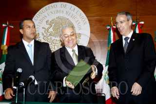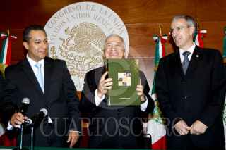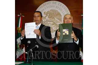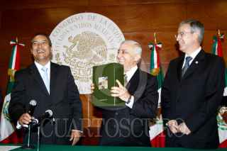 MÉXICO, D.F., 01SEPTIEMBRE2011.- José Francisco Blake Mora, secretario de Gobernación hizo entrega del 5to Informe de Gobierno del presidente Felipe Calderón al diputado Emilio Chuayffet Chemor, presidente de la mesa directiva de la Cámara de Diputados y a José Gonzalez Morfin, presidente de la mesa directiva de la Cámara de Senadores.. FOTO: RODOLFO ANGULO/CUARTOSCURO.COM