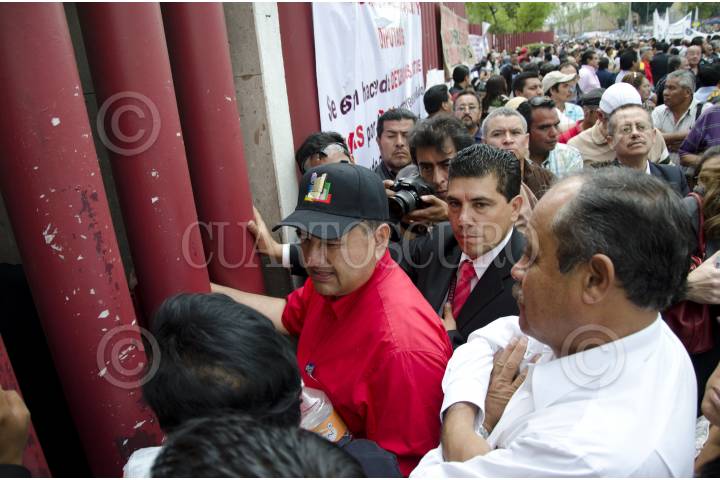 MÉXICO, D.F., 01SEPTIEMBRE2011.- Cientos de personas entre las que se encontraban, organizaciones civiles y sindicatos, marcharo del Recinto Legislativo de San Lazaro a el Zócalo capitalino como parte de las políticas y formas de gobierno que ha implementado Felipe Calderon, Presidente de México hoy el dia que se realizo la entrega de su informe de gobierno. FOTO: ENRIQUE ORDOÑEZ/CUARTOSCURO.COM