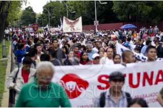 MÉXICO, D.F., 01SEPTIEMBRE2011.- Cientos de personas entre las que se encontraban, organizaciones civiles y sindicatos, marcharo del Recinto Legislativo de San Lazaro a el Zócalo capitalino como parte de las políticas y formas de gobierno que ha implementado Felipe Calderon, Presidente de México hoy el dia que se realizo la entrega de su informe de gobierno. FOTO: ENRIQUE ORDOÑEZ/CUARTOSCURO.COM