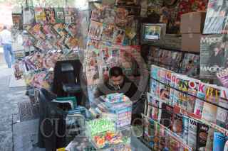 MÉXICO, D.F., 02SEPTIEMBRE2011.- Un voceador en la esquina de Balderas y Av. Chapultepec observa el 5to informe de gobierno del presidente Felipe Calderón. FOTO: RODOLFO ANGULO/CUARTOSCURO.CO,