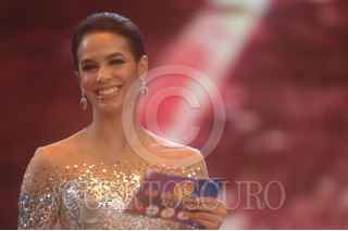 MÉXICO, D.F., 4SEPTIEMBRE2011.- La conductora de “La Academia 2011” Bibi Gaytán en una pausa entre comerciales durante el 3er concierto que se llevó acabo en los estudios Churubusco la noche de hoy. FOTO: FRANCISCO RODRÍGUEZ/CUARTOSCURO.COM