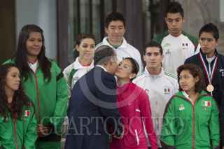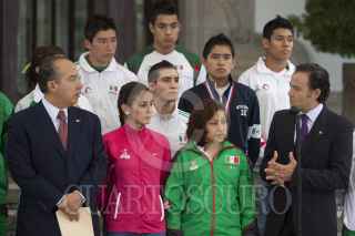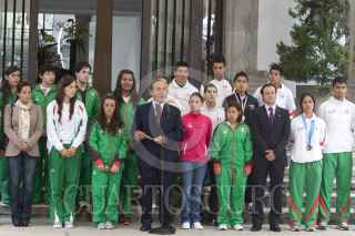 MÉXICO, D.F., 06SEPTIEMBRE2011.- Los deportistas ganadores de medallas en mundiales juveniles y la universiada mundial 2011 realizada en China se tomaron la foto en las escalinatas de la residencia oficial de Los Pinos. Los atletas fueron recibidos por Felipe Calderón Hinojosa, Presidente de los Estados Unidos Mexicanos. FOTO: MOISÉS PABLO/CUARTOSCURO.COM