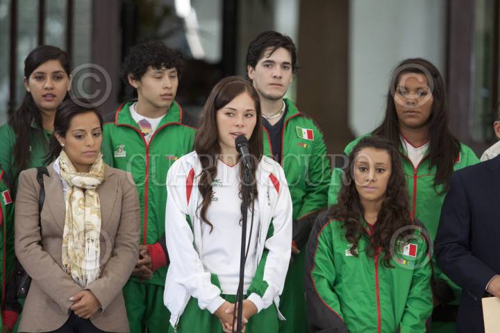 MÉXICO, D.F., 06SEPTIEMBRE2011.- Los deportistas ganadores de medallas en mundiales juveniles y la universiada mundial 2011 realizada en China se tomaron la foto en las escalinatas de la residencia oficial de Los Pinos. Los atletas fueron recibidos por Felipe Calderón Hinojosa, Presidente de los Estados Unidos Mexicanos. FOTO: MOISÉS PABLO/CUARTOSCURO.COM