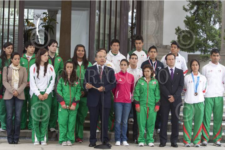MÉXICO, D.F., 06SEPTIEMBRE2011.- Los deportistas ganadores de medallas en mundiales juveniles y la universiada mundial 2011 realizada en China se tomaron la foto en las escalinatas de la residencia oficial de Los Pinos. Los atletas fueron recibidos por Felipe Calderón Hinojosa, Presidente de los Estados Unidos Mexicanos. FOTO: MOISÉS PABLO/CUARTOSCURO.COM