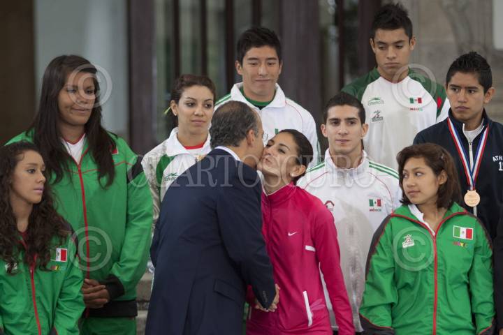 MÉXICO, D.F., 06SEPTIEMBRE2011.- Los deportistas ganadores de medallas en mundiales juveniles y la universiada mundial 2011 realizada en China se tomaron la foto en las escalinatas de la residencia oficial de Los Pinos. Los atletas fueron recibidos por Felipe Calderón Hinojosa, Presidente de los Estados Unidos Mexicanos. FOTO: MOISÉS PABLO/CUARTOSCURO.COM