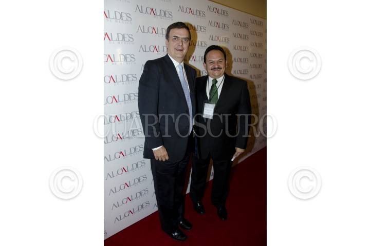 MÉXICO, D.F., 06SEPTIEMBRE2011.- Marcelo Ebrard Casaubón, Jefe de Gobierno del Distrito Federal, durante el chacaleo de los medios de comunicación a su salida después de haber recibido el premio al mejor Alcalde de México, que organiza una revista con el mismo nombre. FOTO: MISAEL VALTIERRA/CUARTOSCURO.COM