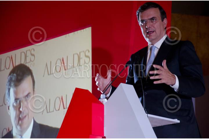 MÉXICO, D.F., 06SEPTIEMBRE2011.- Marcelo Ebrard Casaubón, Jefe de Gobierno del Distrito Federal, durante el chacaleo de los medios de comunicación a su salida después de haber recibido el premio al mejor Alcalde de México, que organiza una revista con el mismo nombre. FOTO: MISAEL VALTIERRA/CUARTOSCURO.COM