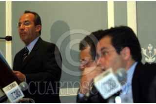México, D.F. 25 OCTUBRE 2004.- Felipe Calderón Hinojosa, pre candidato panista a la presidencia de la República, encabezó el foro " Del sufragio Efectivo a la Democracia Efectiva¨, propuestas para una Reforma Institucional, el cual se llevo a cabo en la Casa Lamm. FOTO: Sandra Perdomo/CUARTOSCURO.COM