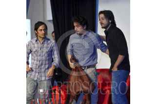 MÉXICO, D.F., 07SEPTIEMBRE2011.- Los actores Gael Garcia Bernal, Gerardo Naranjo y Diego Luna, durante la promoción de la película Miss Bala en la Universidad Iberoamericana. FOTO: GABINO ACEVEDO/CUARTOSCURO.COM