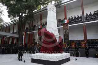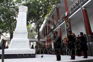 MÉXICO, D.F., 08SEPTIEMBRE2011.- Cadetes del Heroico Colegio Militar durante la develación de un Obelisco y Placa conmemorativa del Heroico Colegio Militar que se realizo en las antiguas instalaciones del Colegio, ubicado en Popotla. El Obelisco es una réplica fiel del que se encuentra a las faldas del Castillo de Chapultepec, tiene inscrita la fecha conmemorativa del 13 de septiembre de 1847, y en la base se lee la dedicatoria: “A la memoria de los alumnos del Colegio Militar que murieron como héroes en la invasión Norteamericana”. FOTO: RODOLFO ANGULO/CUARTOSCURO.COM