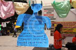 OAXACA, OAXACA, 08SEPTIEMBRE2011.- Este jueves cumplieron un mes de instalarse en protesta frente al Palacio de Gobierno las profesoras Miriam Elena Velasco Velasco y Ernestina Martínez Jiménez, la primera mantiene una demanda en contra de Timoteo Agustín Chávez Aquino director de Proyectos Educativos del Instituto Estatal de Educación Pública de Oaxaca (IEEPO) esto por acoso sexual, a quien el pasado martes se le dictó auto de formal prisión pero que sigue libre gracias a un amparo. Mientras que Martínez Jiménez fue cesada de su cargo en el programa de Educación para Niños y Niñas Migrantes, esto tras acusar el desvío de recursos. FOTO: ARTURO PÉREZ ALFONSO/CUARTOSCURO.COM