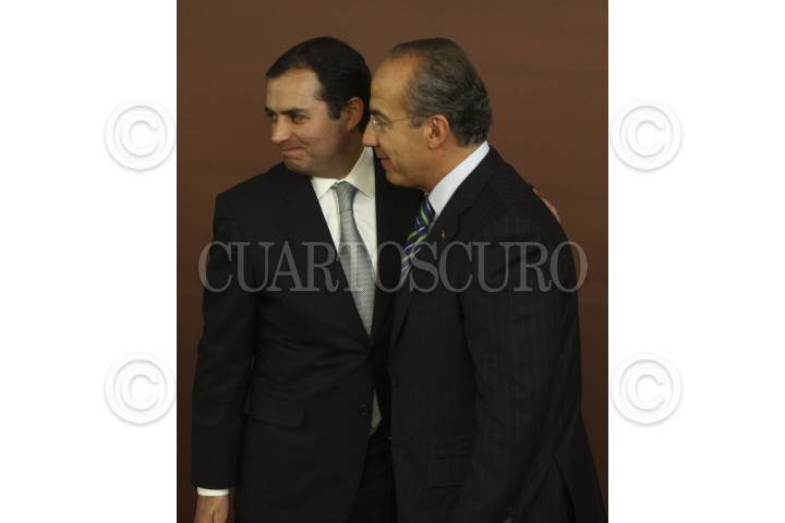 MÉXICO, D.F., 09SEPTIEMBRE2011.- José Ángel Córdova Villalobos, y Ernesto Córdero Arrroyo, renunciaron a sus cargos en el gabiente del Presidente de México Felipe Calderón Hinojosa. Ambos tienes aspiraciones electorales; Córdova Villalobos buscará la candidatura al gobierno de Guanajuato y Cordero Arroyo, hará lo propio para la candidatura panista a la Presidencia de la República. FOTO: MOISÉS PABLO/CUARTOSCURO.COM