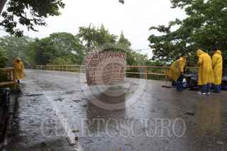 NACAJUCA, TABASCO, 09SEPTIEMBRE2011.- Ejidatarios Chontales cierran el acceso y salida al personal y vehículos de la empresa PEMEX, debido a las afectaciones por las inundaciones en sus cosechas, pastizales y semientes muertos. FOTO: MARCO POLO GUZMÁN HERNÁNDEZ/CUARTOSCURO.COM