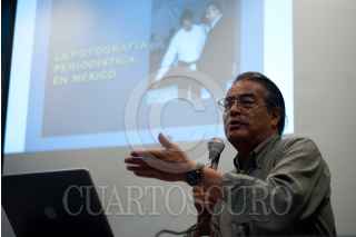 CUERNAVACA, MORELOS.- 10SEPTIEMBRE2011.- Fernando Brito, editor de fotografía del periódico EL Debate, de Culiacán, acompañado por Pedro Valtierra, director de la Agencia Cuartoscuro, participaron en la mesa de discusión sobre Violencia y fotografía dentro de las actividades de Morelos FotoFest que se lleva a cabo en el marco de Fotoseptiembre. FOTO: DEMIAN CHAVEZ/CUARTOSCURO.COM