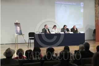 MÉXICO, D.F., 11SEPTIEMBRE2011.- María José de Diego, los escritores Jorge F. Hernández, Rafael Rojas y Juan Carlos García Álvarez, rindieron un homenaje póstumo al escritor cubano Eliseo Alberto (1951-2011), mejor conocido como "Lichi" en la sala Manuel M. Ponce del Palacio de Bellas Artes. FOTO: GUILLERMO PEREA/CUARTOSCURO.COM