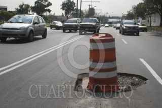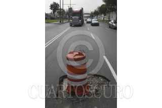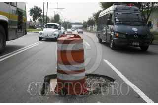 MÉXICO, D.F., 12SEPTIEMBRE2011.- Un cono de vialidad fue la solución para tapar un bache que se registro en la calzada Ermita Iztapalapa. FOTO: SAÚL LÓPEZ/CUARTOSCURO.COM