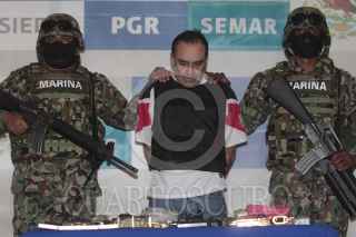 MÉXICO, D.F., 12SEPTIEMBRE2011.- Elementos de la Secretaria de Marina en coordinación con la PGR, realizaron la detención y presentación de Manuel Alquisires García alias el "Meme" presunto operador financiero del cartel del Golfo. FOTO: ENRIQUE ORDÓÑEZ/CUARTOSCURO.COM