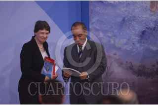 MÉXICO, D.F., 13SEPTIEMBRE2011.- Hellen Clark, administradora del Programa de las Naciones Unidas Para el Desarrollo (PNUD); y Felipe Calderón Hinojosa, participaron en el evento de conmemoración de los 50 años del PNUD en México en donde se Firmó el Acuerdo Estratégico de Cooperación entre México y el PNUD. FOTO: IVÁN MÉNDEZ/CUARTOSCURO.COM