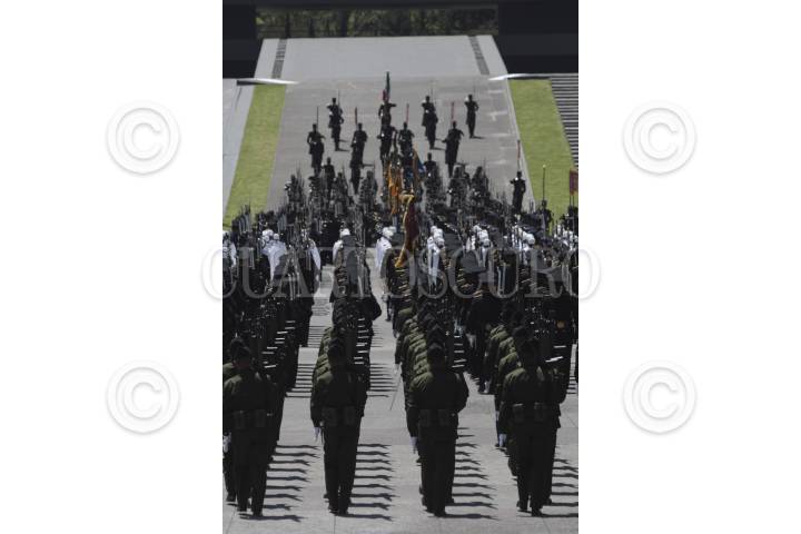 MÉXICO D.F., 14SEPTIEMBRE2011.- Guillermo Galvan Galva, Secretario de la Defensa junto a Felipe Calderon, Comandante Supremo de las Fuerzas Armadas de México y Francisco Saynez, Secretario de Marina y Armada de México durante la Ceremonia de Clausura y Apertura de Cursos del Sistema Educativo Militar misma que tuvo lugar en el Colegio Militar de la ciudad. FOTO: ENRIQUE ORDÓÑEZ/CUARTOSCURO.COM