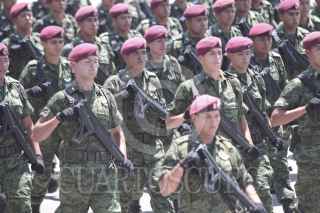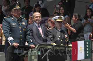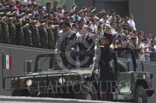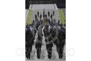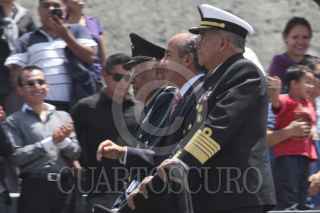 MÉXICO D.F., 14SEPTIEMBRE2011.- Guillermo Galvan Galva, Secretario de la Defensa junto a Felipe Calderon, Comandante Supremo de las Fuerzas Armadas de México y Francisco Saynez, Secretario de Marina y Armada de México durante la Ceremonia de Clausura y Apertura de Cursos del Sistema Educativo Militar misma que tuvo lugar en el Colegio Militar de la ciudad. FOTO: ENRIQUE ORDÓÑEZ/CUARTOSCURO.COM