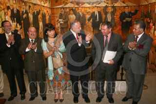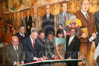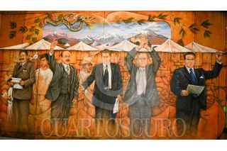 TOLUCA, ESTADO DE MÉXICO, 14SEPTIEMBRE2011.- Inauguraron la tarde de hoy el mural “La Construcción de un estado” del pintor Ismael Ramos en las escalinatas del palacio de gobierno de Toluca, al lugar asistió el pintor, el Secretario de Educacion, Alberto Curi Naime, Martha Hilda González Calderón, Secretaria de Turismo del Estado de México y Agustín Gasca Pliego, director del Instituto Mexiquense de Cultura. FOTO: SAÚL LÓPEZ/CUARTOSCURO