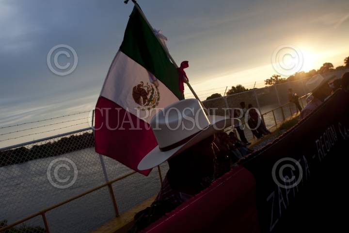 CIUDAD HIDALGO, CHIAPAS,14SEPTIEMBRE2011.- El poeta Javier Sicilia acompañado de Julian LeBaron y miembros de la Caravana al Sur del Movimiento por la Paz con Justicia y Dignidad se encontraron con miembros de organizaciones guatemaltecas en donde realizaron un mitin sobre el puente fronterizo entre Cd. Hidalgo, Chiapas y Tecún Umán, Guatemala. FOTO: RODOLFO ANGULO/CUARTOSCURO.COM