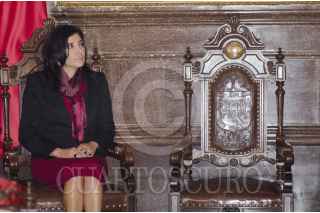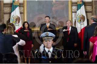 MÉXICO, D.F., 15SEPTIEMBRE2011.- Rosalinda Bueso Asfura y Marcelo Ebrard Casaubón, Jefe de Gobierno del Distrito Federal, durante la ceremonia conmemorativa de la Independencia que se realizó en el antiguo edificio del Ayuntamiento. FOTO: MISAEL VALTIERRA/CUARTOSCURO.COM