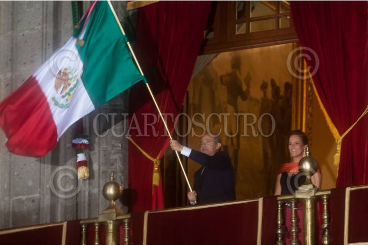MÉXICO D.F., 15SEPTIEMBRE2011.- Felipe Claderón Hinojosa, Presidente de México, acompañado de su esposa Margarita Zavala y de sus hijos, encabezo la ceremonia del 201 Aniversario del Inicio de la Guerra de Idependencia de México. FOTO: GUILLERMO PEREA/CUARTOSCURO.COM