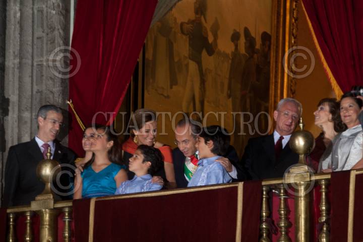MÉXICO D.F., 15SEPTIEMBRE2011.- Felipe Claderón Hinojosa, Presidente de México, acompañado de su esposa Margarita Zavala y de sus hijos, encabezo la ceremonia del 201 Aniversario del Inicio de la Guerra de Idependencia de México. FOTO: GUILLERMO PEREA/CUARTOSCURO.COM