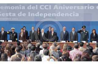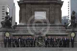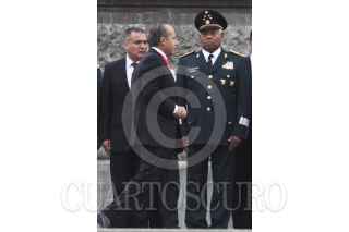 MÉXICO D.F., 16SEPTIEMBRE2011.- Francisco Saynez, Secretario de Marina junto a Marisela Morales Procuradora de la Republica durante la ceremonia del CCI Aniversario del Inicio de la Gesta de Independencia que se realizó en la columna del Ángel de la Independencia. FOTO: ENRIQUE ORDÓÑEZ/CUARTOSCURO.COM