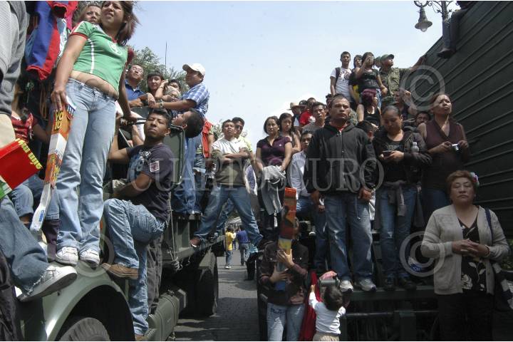 MÉXICO, D.F., 16SEPTIEMBRE2011.- Aviones de la Fuerza Aerea Mexicana volaron sobre el Centro Histórico como parte de la parada militar celebrada hoy con motivo del CCI Aniversario del Grito de Independencia. FOTO: FRANCISCO RODRÍGUEZ/CUARTOSCURO.COM