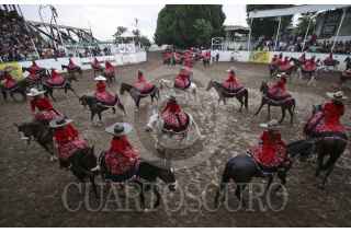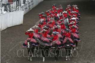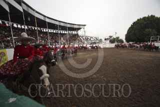 GUADALAJARA, JALISCO, 16SEPTIEMBRE2011.- La Escaramuza, Las Margaritas logró establecer nuevo Record Guinness por ser la escaramuza más grande del mundo con entre 45 y 50 amazonas realizando sus rutinas. Ésto se realizó durante el cumplimiento de su 20 aniversario y llevado a cabo en el lienzo charro Margarito Yañez de Huentitan. FOTO: FERNANDO CARRANZA GARCIA/CUARTOSCURO.COM