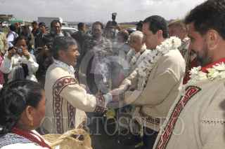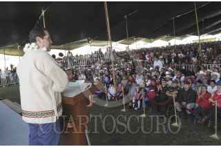 SAN JOSÉ DEL RINCÓN, ESTADO DE MÉXICO, 17SEPTIEMBRE2011.- El gobernador Eruviel Ávila Villegas fue recibido con una ceremonia mazahua, en su segunda gira de trabajo, donde inauguró una unidad deportiva, así como la pavimentación y el alumbrado público del bulevar Centenario y del camino del Cecytem. FOTO: CUARTOSCURO.COM