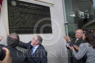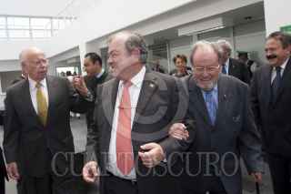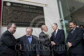 MÉXICO D.F., 19SEPTIEMBRE2011.- José Narro, Rector de la UNAM, Edgar Elías Azar, magistrado presidente del Tribunal Superior de Justicia del DF, Armando Ahued, Secretario de Salud, durante la ceremonia de develación de la placa en honor de Guillermo Soberón Acevedo, quien fuera Rector de la UNAM y Secretario de Salud, esto en las instalaciones de SEMEFO . FOTO: GUILLERMO PEREA/CUARTOSCURO.COM