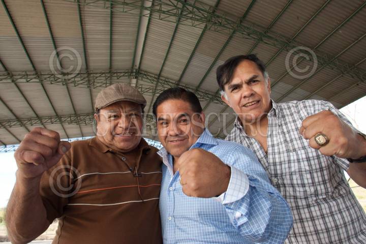QUETRETARO, QUERETARO, 21SEPTIEMBRE.- Los boxeadores mexicanos campeones mundiales La Chiquita González, Pipino Cuevas y Chucho Castillo, durante la su presentación esta tarde ante aficionados, previo a la pelea de box organizada por el CMB y Provincia Juriquilla donde se expondrán 2 titulos mundiales. FOTO: DEMIAN CHÁVEZ/CUARTOSCURO.COM